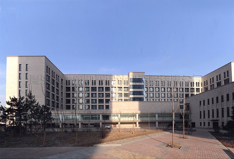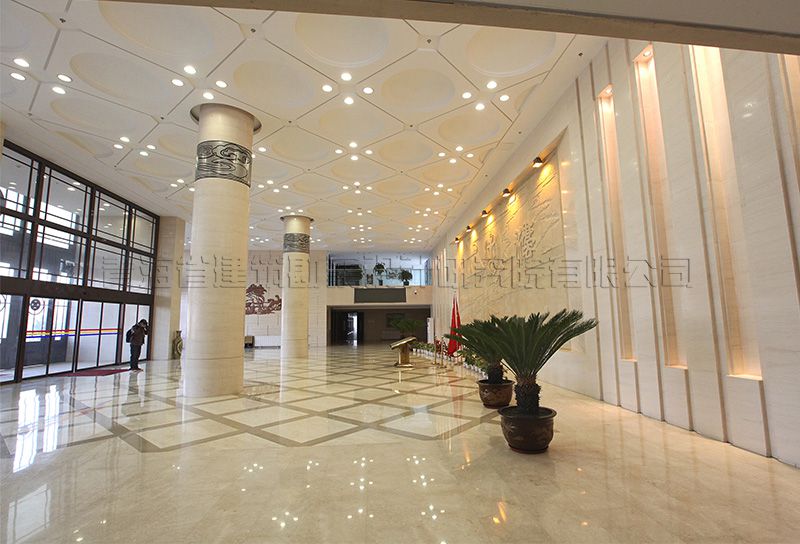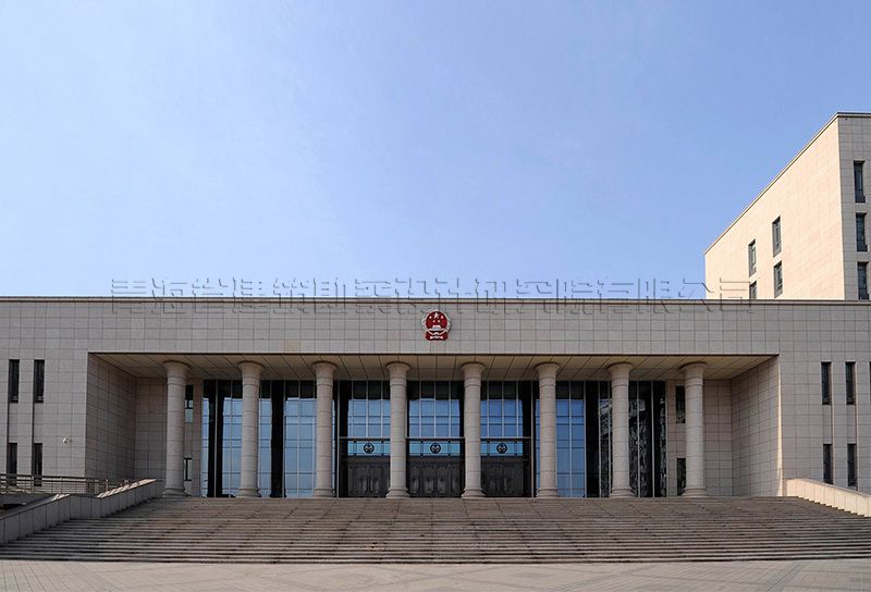青海省高級(jí)人民法院審判辦公樓工程位于西寧市城北區(qū)柴達(dá)木路與西站二巷道路交叉口西南角,總用地面積60.27畝,用地內(nèi)布置審判辦公樓、法官培訓(xùn)中心、干警高層住宅樓及配套鍋爐房等項(xiàng)目。審判辦公樓總建筑面積32671.00m2,地上層數(shù)為8層,地下1層,建筑高度31.80m。主體建筑分為辦公用房和審判用房?jī)蓚€(gè)部分。建筑一層及局部地下室設(shè)汽車庫(kù)、設(shè)備用房、檔案室和羈押用房。辦公部分二至八層為法院行政公共用房,其中二層設(shè)門廳、多功能會(huì)議廳,頂層設(shè)大會(huì)議室、視頻會(huì)議室、閱覽室、健身房等,其他樓層設(shè)辦公及部門會(huì)議室。辦公用房設(shè)置滿足規(guī)范《黨政機(jī)關(guān)辦公用房建設(shè)標(biāo)準(zhǔn)》的要求。依據(jù)《人民法院法庭建設(shè)標(biāo)準(zhǔn)》審判用房布置在辦公樓東南側(cè),相對(duì)獨(dú)立,其中設(shè)大法庭1個(gè),中法庭2個(gè),小法庭8個(gè),另設(shè)立案大廳、信訪大廳、候?qū)彺髲d及法官和參與庭審活動(dòng)的律師、證人、公訴人等人員的配套服務(wù)用房。審判法庭布置重點(diǎn)解決法庭內(nèi)各種流線的要求,即法官通道、羈押通道、旁聽(tīng)觀眾通道,三者獨(dú)立又互相聯(lián)系的關(guān)系。