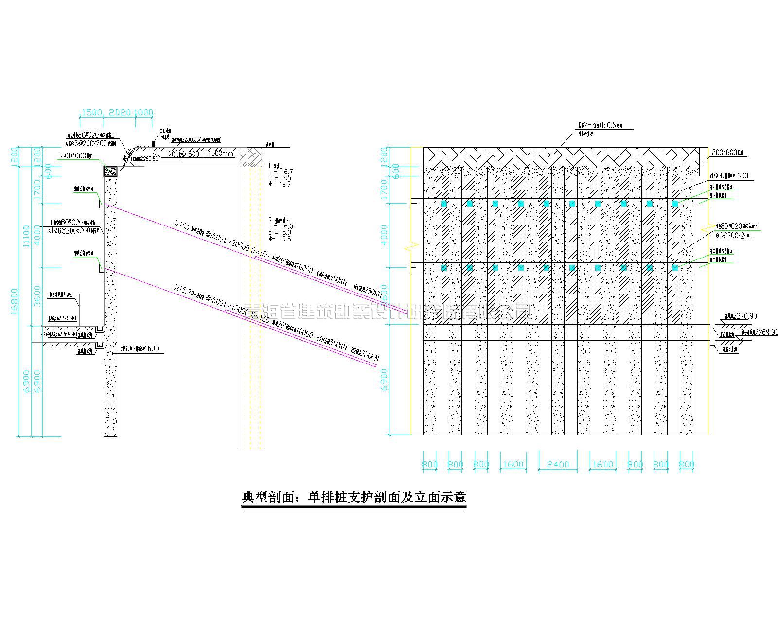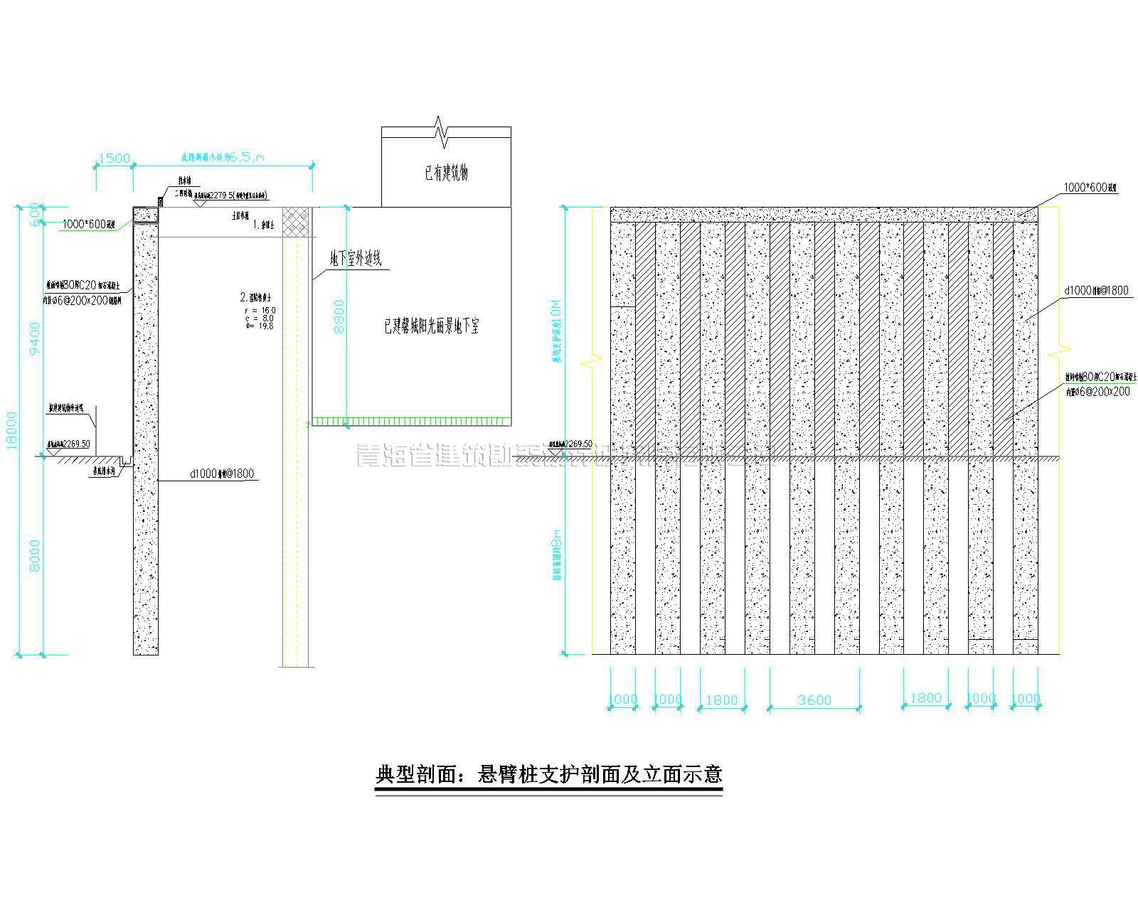 根據(jù)現(xiàn)場地質(zhì)條件及基坑周邊環(huán)境,依據(jù)《建筑基坑支護技術(shù)規(guī)程》(JGJ120-2012)及《濕陷性黃土地區(qū)建筑基坑工程安全技術(shù)規(guī)程》(JGJ167-2009)規(guī)定確定;基坑北側(cè)及西側(cè)基坑深度為8.6-10.0m,支護結(jié)構(gòu)安全等級為為二級;其余兩側(cè)(東側(cè)及南側(cè))開挖深度在9m-12.1m之間,支護結(jié)構(gòu)安全等級為一級。此次支護基坑側(cè)壁安全等級為一級。本著安全穩(wěn)定、經(jīng)濟合理的原則,本次基坑支護設(shè)計采用排樁+預(yù)應(yīng)力及懸臂樁等綜合性,分段性的支護支護方式進行?;又ёo設(shè)計工作于2018年完成,并于次年通過青海省建設(shè)工程勘察設(shè)計咨詢中心有限公司審查合格。